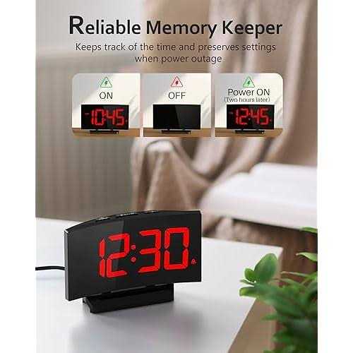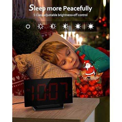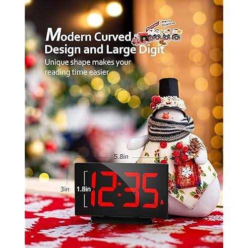 Goloza Digital Alarm Clock for Bedroom, Digital Clock with Modern Curved Design, Conspicuous Red LED Numbers, 5 Levels Brightness+Off, 2 Volume, 3