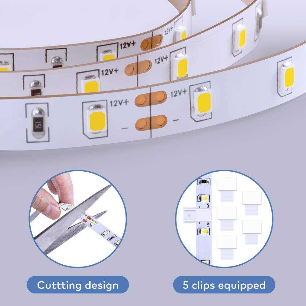 Govee White Led Strip Lights, 6500K Dimmable Light Strip for Room, Cabinet, Closet, 16.4 Feet Read more Bright Mirror Lights 6500K white strip lights make it a breeze to illuminate every detail. Light up Display Racks 16.4ft strip is long enough ro reach around the entire rack and brighten the whole place up. Effectively avoid fumbling things in dark. Illuminate Your Kitchen Flexible led light strip makes kitchen corner setup a breeze. No need to fumble with things in darkness.
