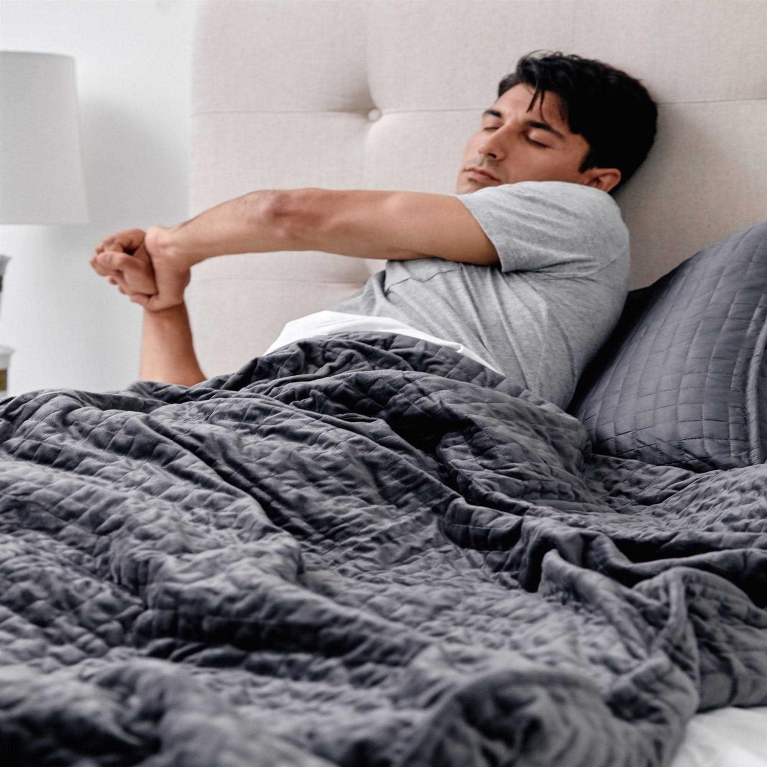 Fulfilled by our friends at Gravity Blankets Gravity is the only weighted blanket scientifically proven to improve sleep quality by an independent study of 1,000 nights of sleep (SleepScore). 76% of people using the Gravity Blanket reported falling asleep faster and feeling more rested upon waking up in the morning. 72% of participants reported better, more restful sleep. 54.7% reported feeling less anxious and stressed from using the Gravity Blanket. Features a premium micro-plush duvet cover and an inner weighted piece containing fine-grade glass beads. Precise gridded stitching ensures the glass beads remain uniformly distributed, providing comfort, no matter how you use your weighted blanket. The weighted inner is secured to the duvet cover via ties and elastic-button connectors and with our upgraded zipper fastening system. Cover is machine washable (wash in cold water, tumble dry on low), while the inner weighted blanket is hand-wash-only and air dry.