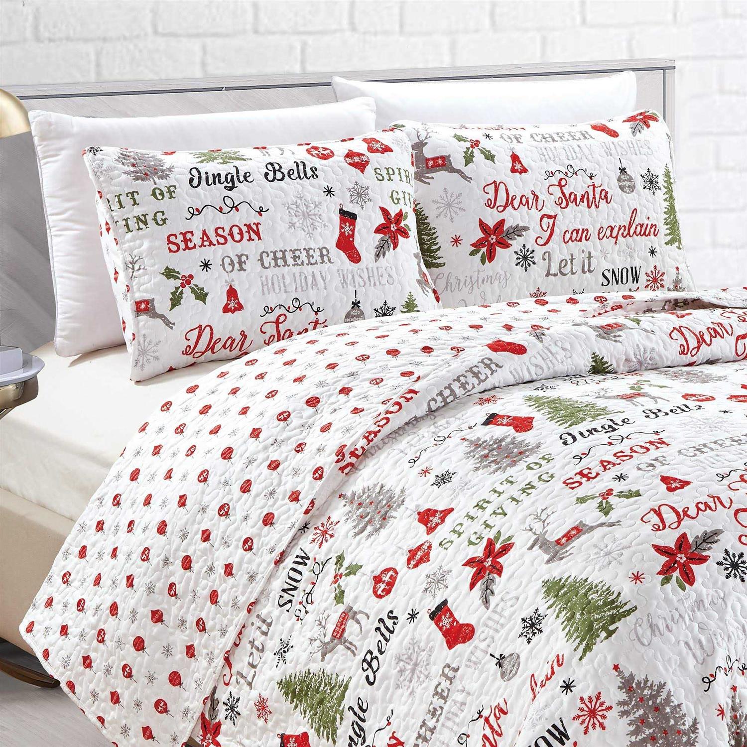 This holiday quilt set is the perfect companion for the winter season. Choose a bed cover that spreads the holiday cheer while keeping you warm and cozy.