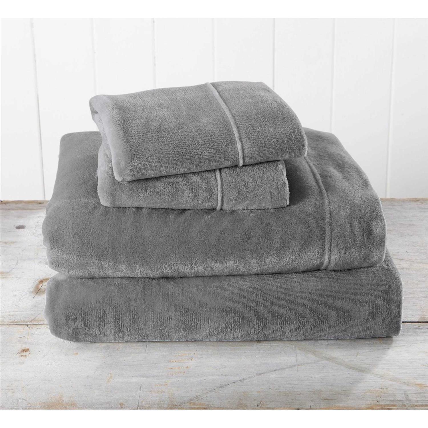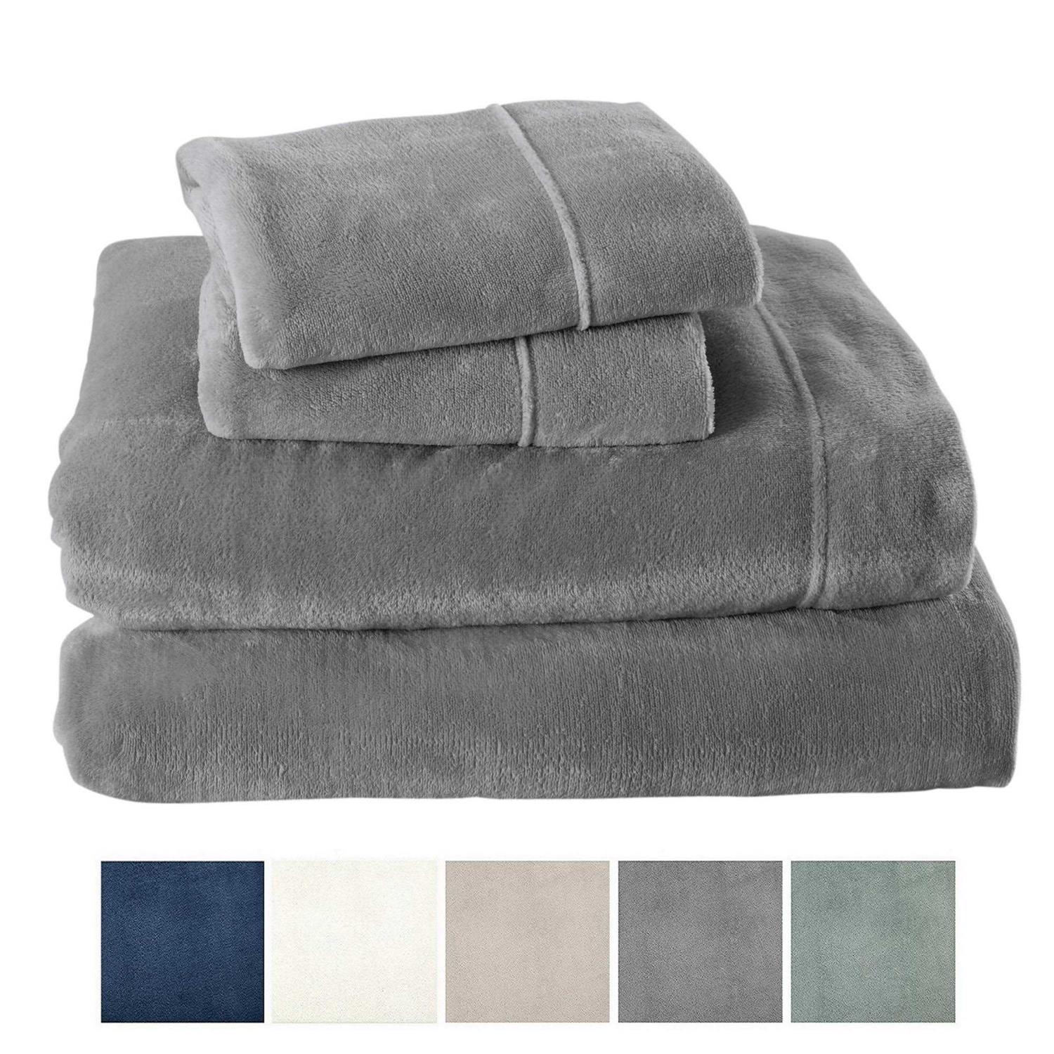 Great Bay Home Extra Soft Cozy Velvet Plush Solid Bed Sheet Set – Twin – Grey