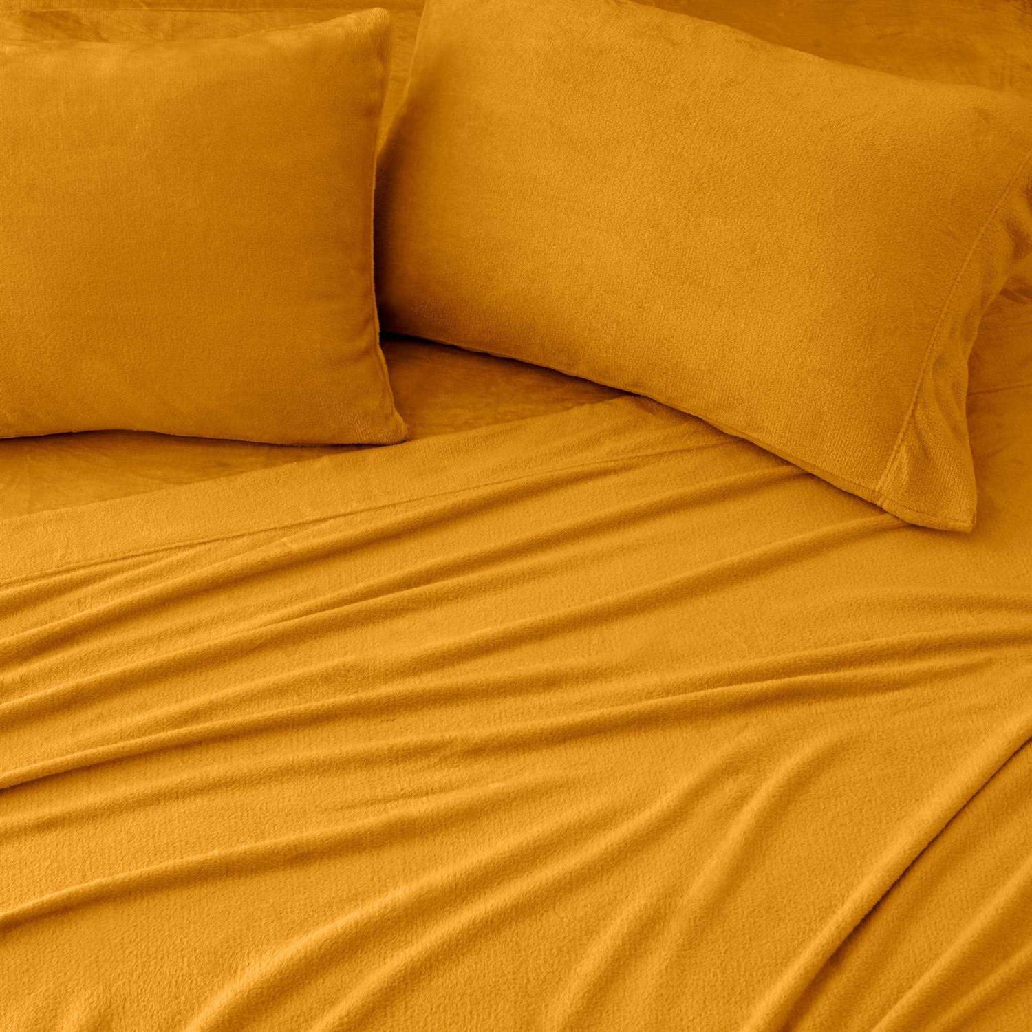 Great Bay Home Solid Velvet Plush Warm and Cozy Fleece Sheet Set (Full, Marigold)