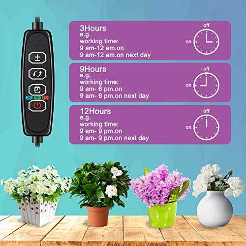 Grow Lights for Indoor Plants Growing, 6500K White LED Grow Light Lamp, 9 Dimmable Settings, Plant Growth Lamp for Indoor Plants with White Spectrum, Adjustable Gooseneck, 3/9/12H Timer (Silver) SMART CYCLE MEMORY FUNCTION An intelligent grow light, without manual duty, one key to turn on and off, automatically turn on and off at the set time every day. The indoor plants grow light comes with three timer setting options which allow up to 3, 9, or 12 hours according to plant needs. Potted plants