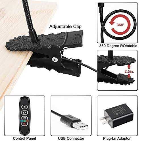 Grow Lights for Indoor Plants Growing, 6500K White LED Grow Lamp, 9 Dimmable Settings for Indoor Plants with White Spectrum, Adjustable Gooseneck, 3