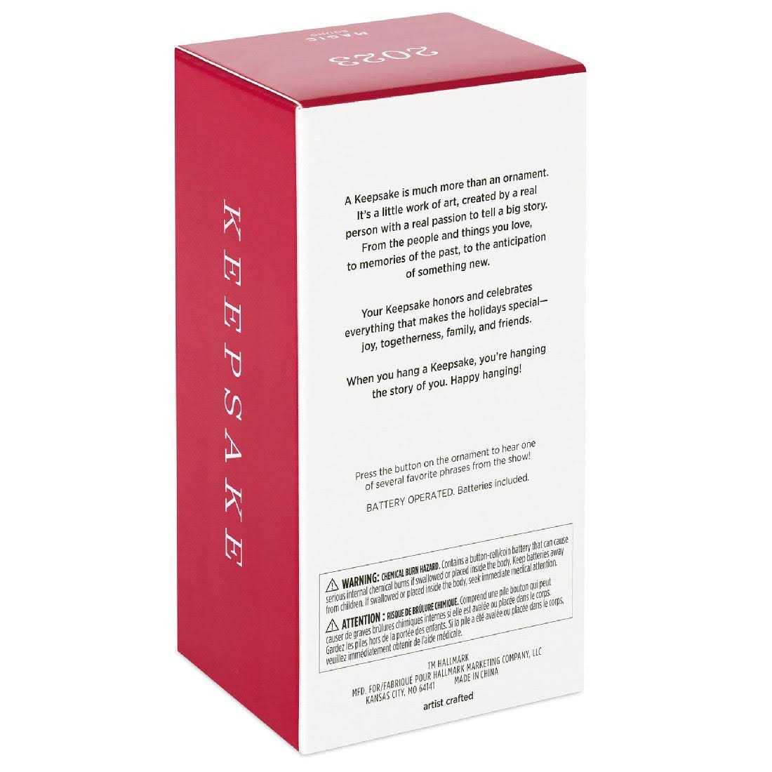 Win the holidays with this Ted Lasso Hallmark Keepsake Christmas ornament. Features everyone’s favorite soccer coach and plays favorite Ted-isms from the hit TV series when you press the button. Plastic Christmas tree ornament measures approximately 2.25 x 4.78 x 2.28 Includes: One 2023 Keepsake Ornament in gift box for easy gift giving, preservation and storage. Requires two (2) LR44 replaceable batteries (included). With unparalleled artistry and exceptional detail, Hallmark Keepsake Christmas ornaments are perfect for preserving precious memories, commemorating special milestones and celebrating individual hobbies and interests.