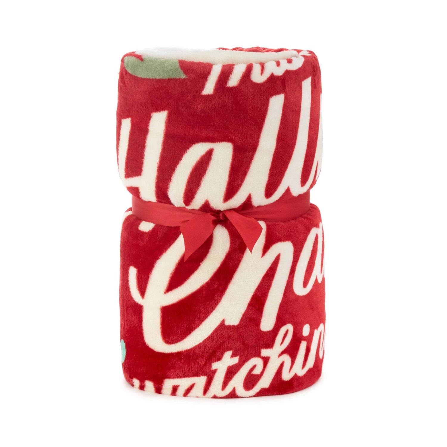 - Hallmark Channel oversized soft red blanket with Sherpa fleece backing features a fun message.