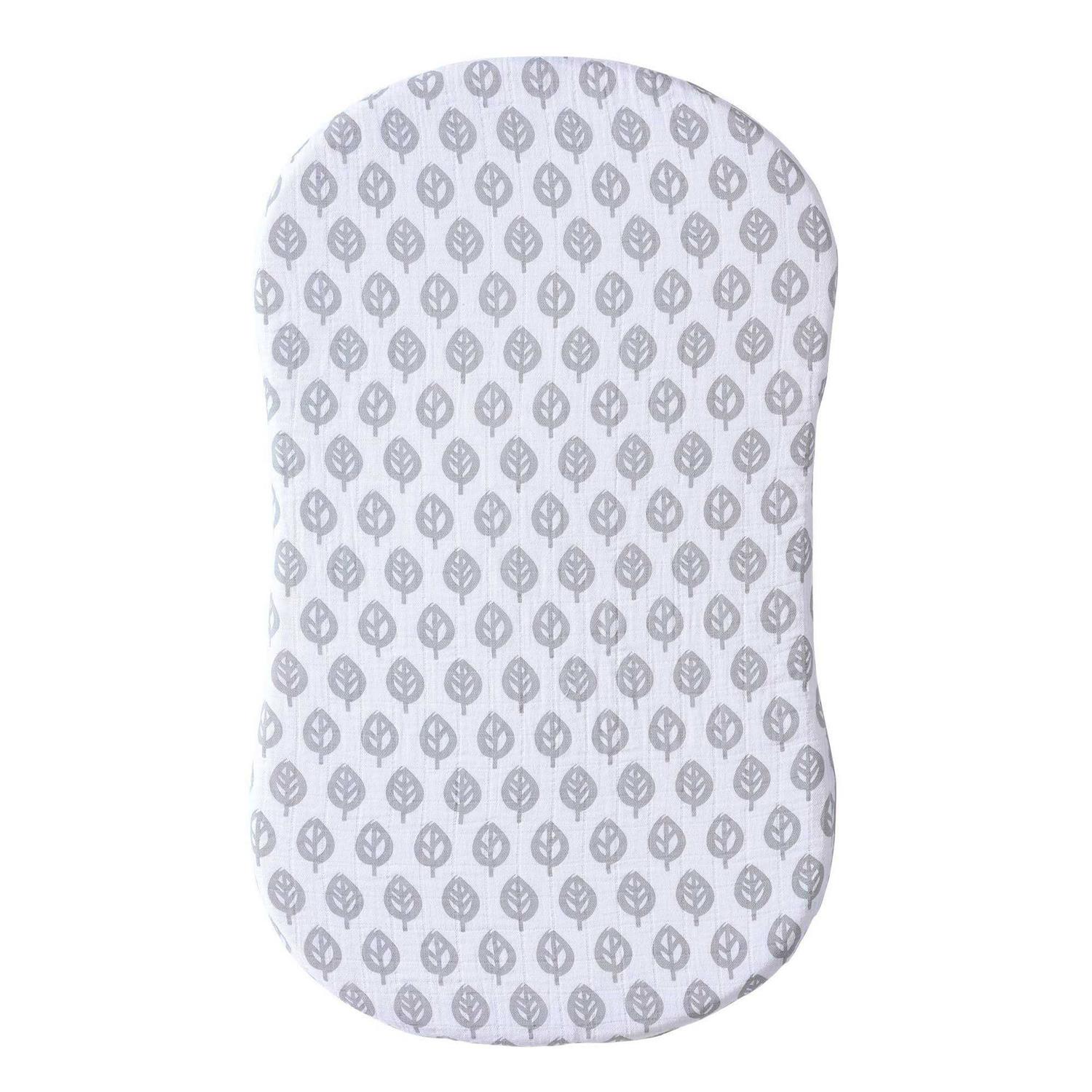 HALO Bassinest Muslin Sheet in Grey/White Leaf Print