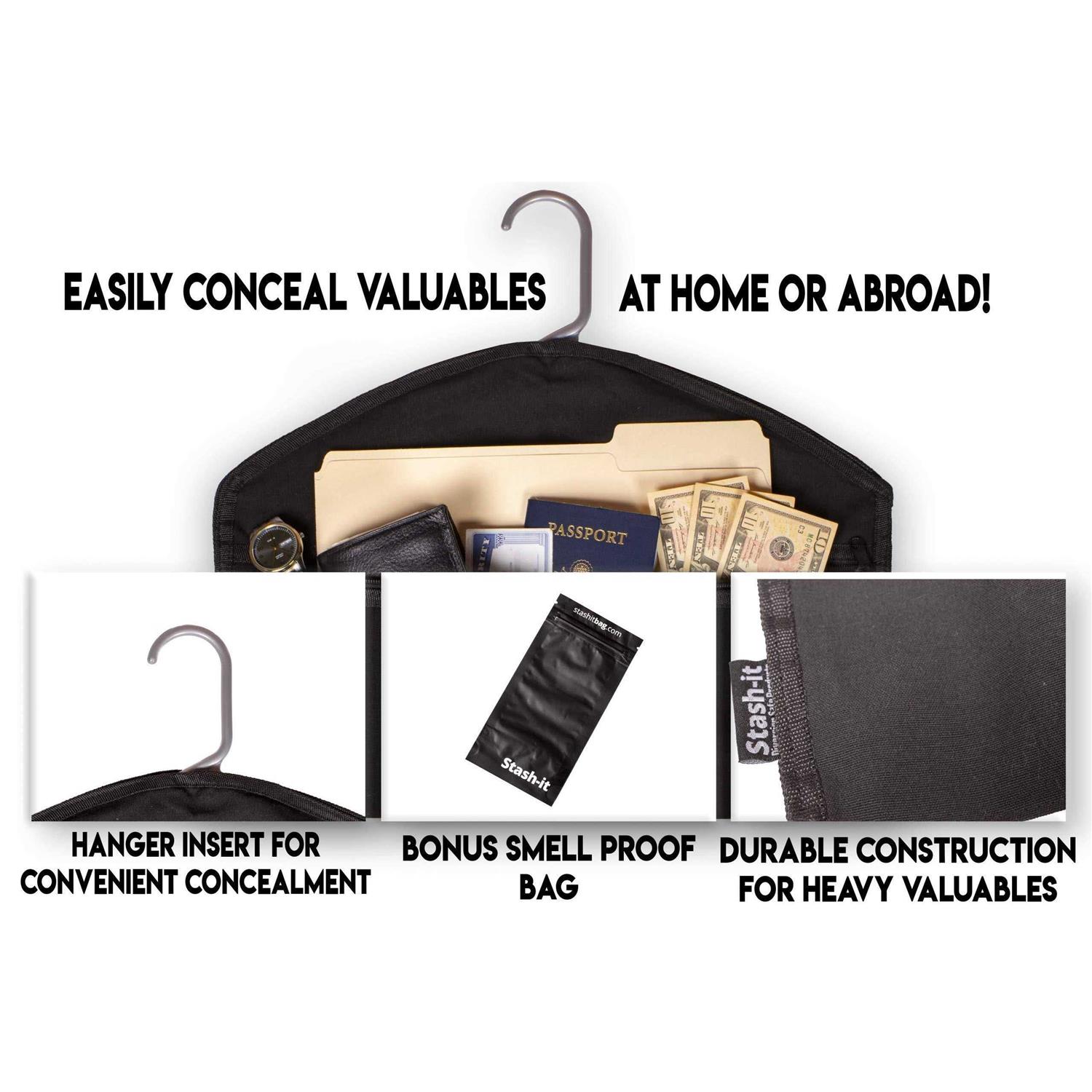 Hanger Diversion Safe by Stash it, Hidden Pocket Safe, Fits Under Hanging Clothes with Pocket to Hide Valuables for Home or Travel