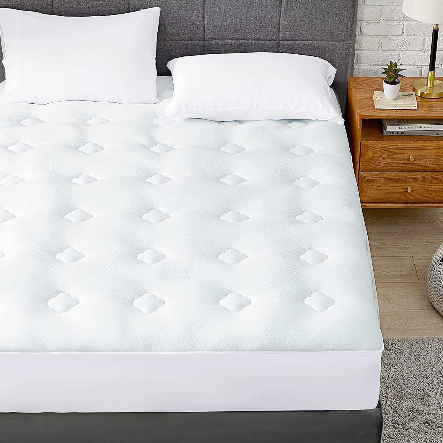 Hansleep Gel Memory Foam Mattress Pad Full, Bamboo Mattress Pad Fluffy Mattress Protector with Deep Pocket, Breathable Cooling Air Mattress Topper