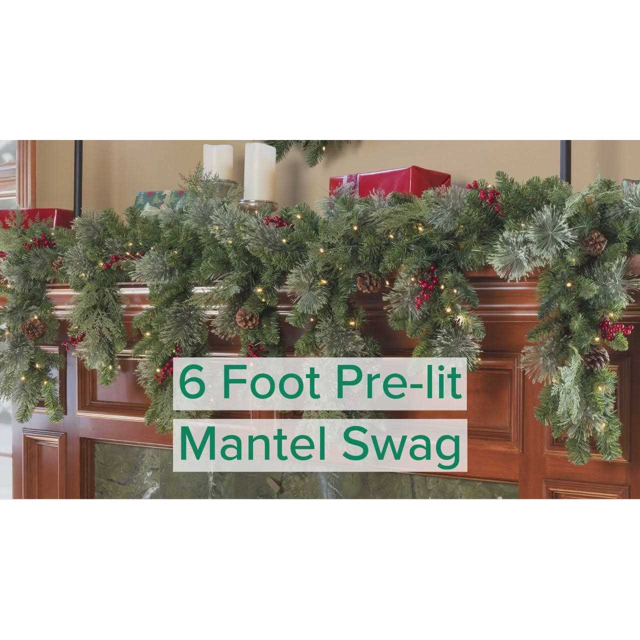 Haute Decor 6 Foot Christmas Pre-lit Mantel Swag with Timer