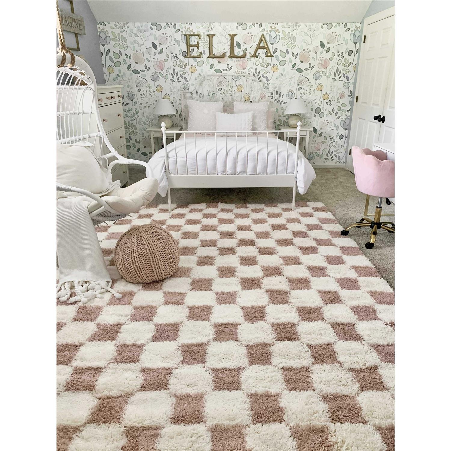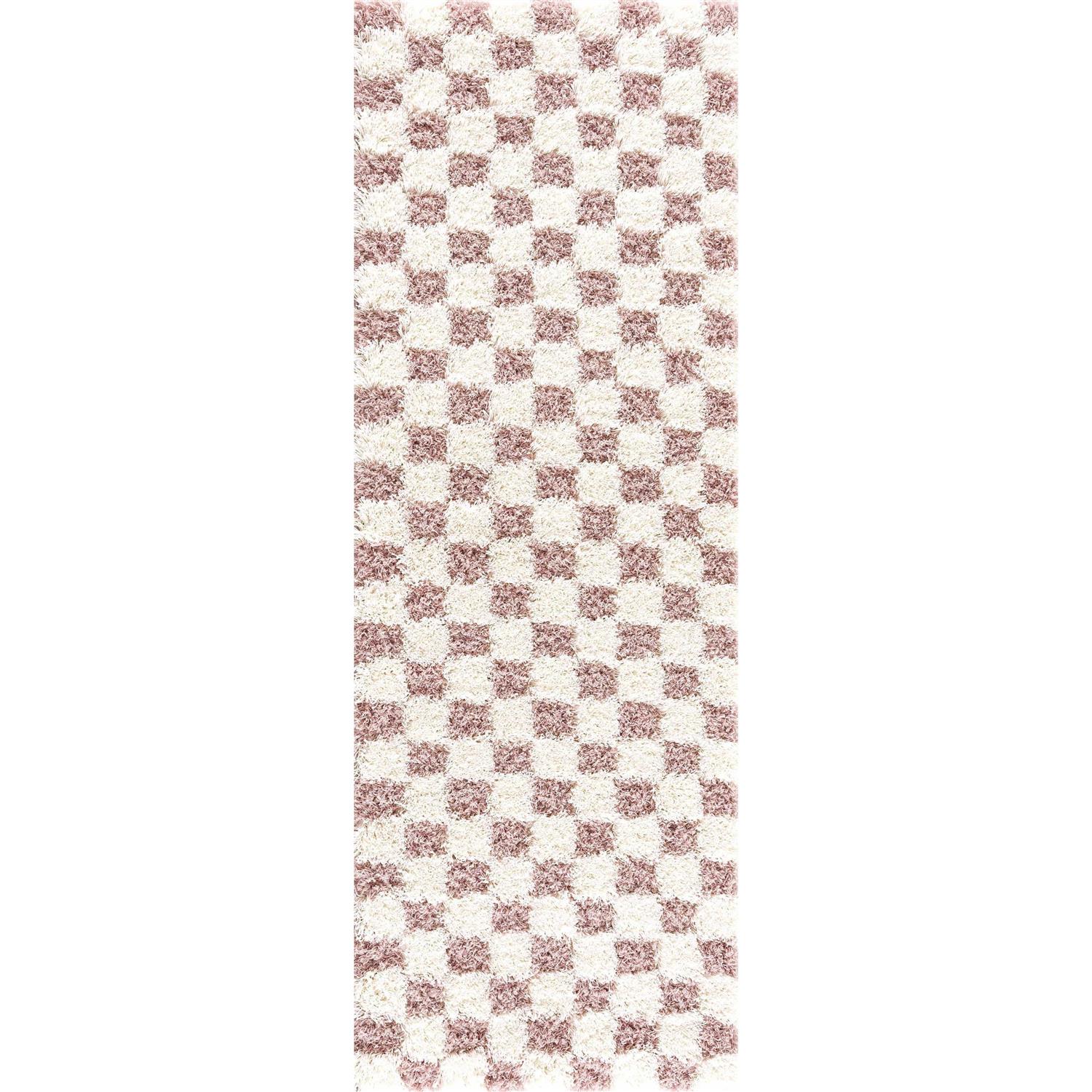 Hauteloom Atira Pink Checkered Area Rug | Pink Checkered Shag Rug