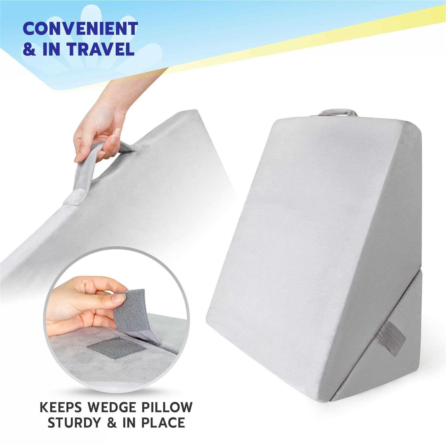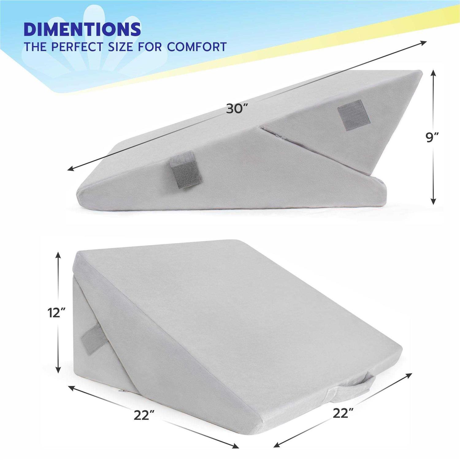 COMFORTABLE BED WEDGE PILLOW – Adjust your sleeping angle naturally and ease the pressure off your head, neck, legs, and back with our Healthex wedge pillow for sleeping that is designed to provide you with maximum comfort in all the sleeping positions. QUALITY MEMORY FOAM DESIGN – Manufactured with a 9”x12” thick folding memory foam layer, this 22″x22″x12″ leg support pillow is firm enough to provide you with proper support is extremely soft and offers you unparalleled support while resting the affected area. MULTIPURPOSE ADJUSTABLE PILLOW – This versatile adjustable wedge pillow can be used while sitting, sleeping, or simply lounging about. Provide your legs, back, neck, or any other part of the body with unmatched support with our grey wedge pillow to relieve stress. ENHANCE YOUR HEALTH AND SLEEP – An angled wedge pillow is a great sleeping aid to promote blood flow throughout the body and also to keep you refreshed. Prevent snoring/ heartburn while you sleep and also relieve knee pain, back pain, varicose veins, and more! EASY TO STORE PORTABLE WEDGE PILLOW – Our foldable multipurpose bed wedge pillow can be stored without taking up much space! , you can carry this memory foam pillow without while on the go. Find your perfect posture with Healthex bed wedge pillow that will provide you with good night’s rest, improve your sleeping posture, and positively affect your long term physical health.