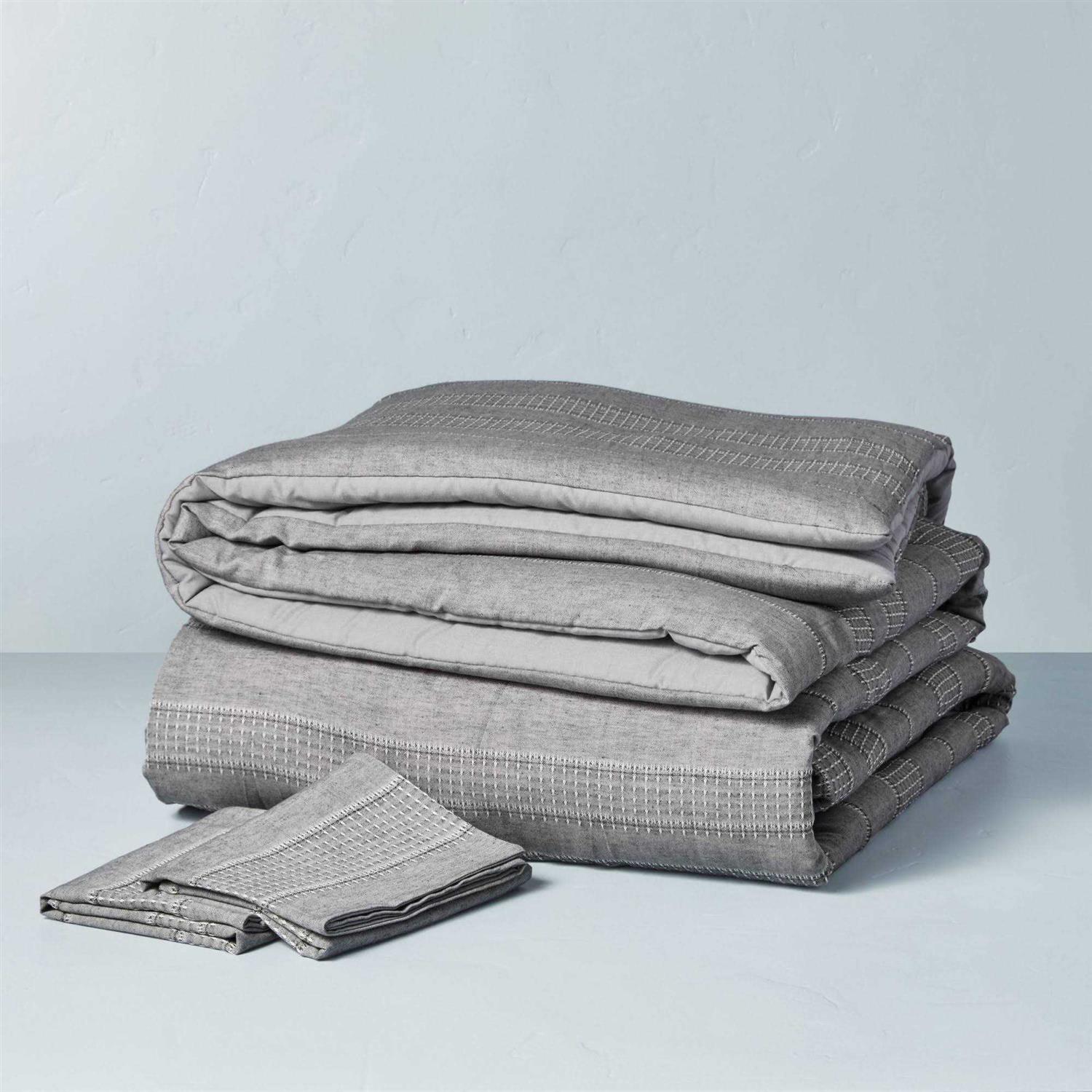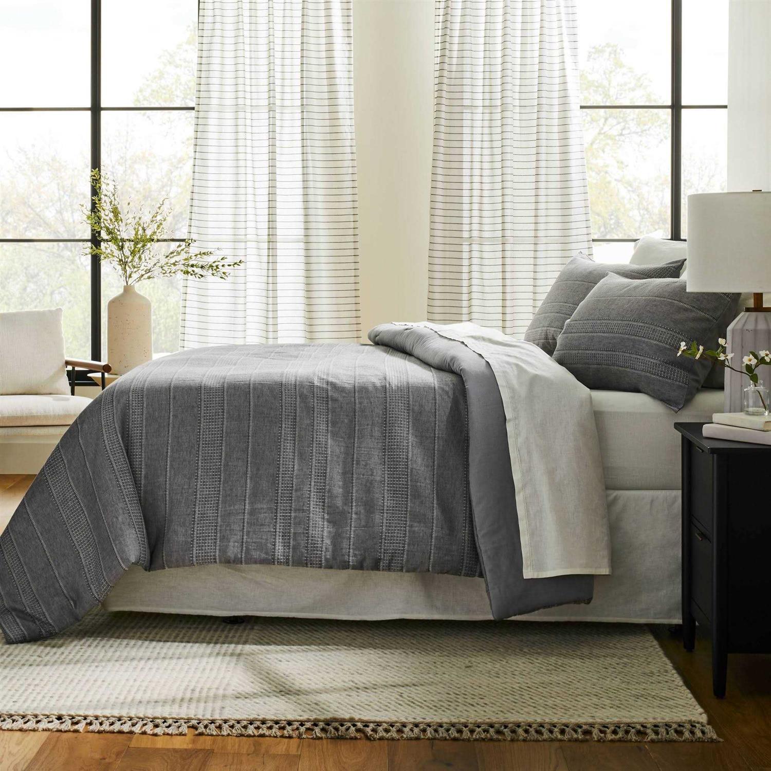 3PC Full/Queen Pickstich Stripe Comforter Bedding Set Railroad Gray – Hearth & Hand with Magnolia