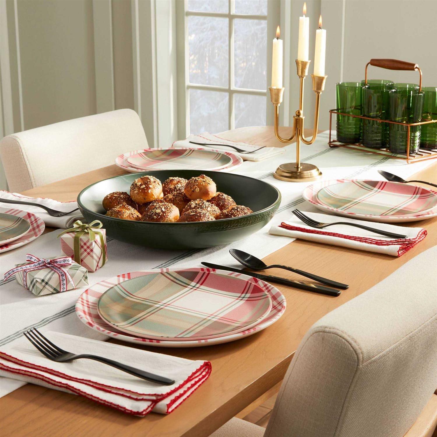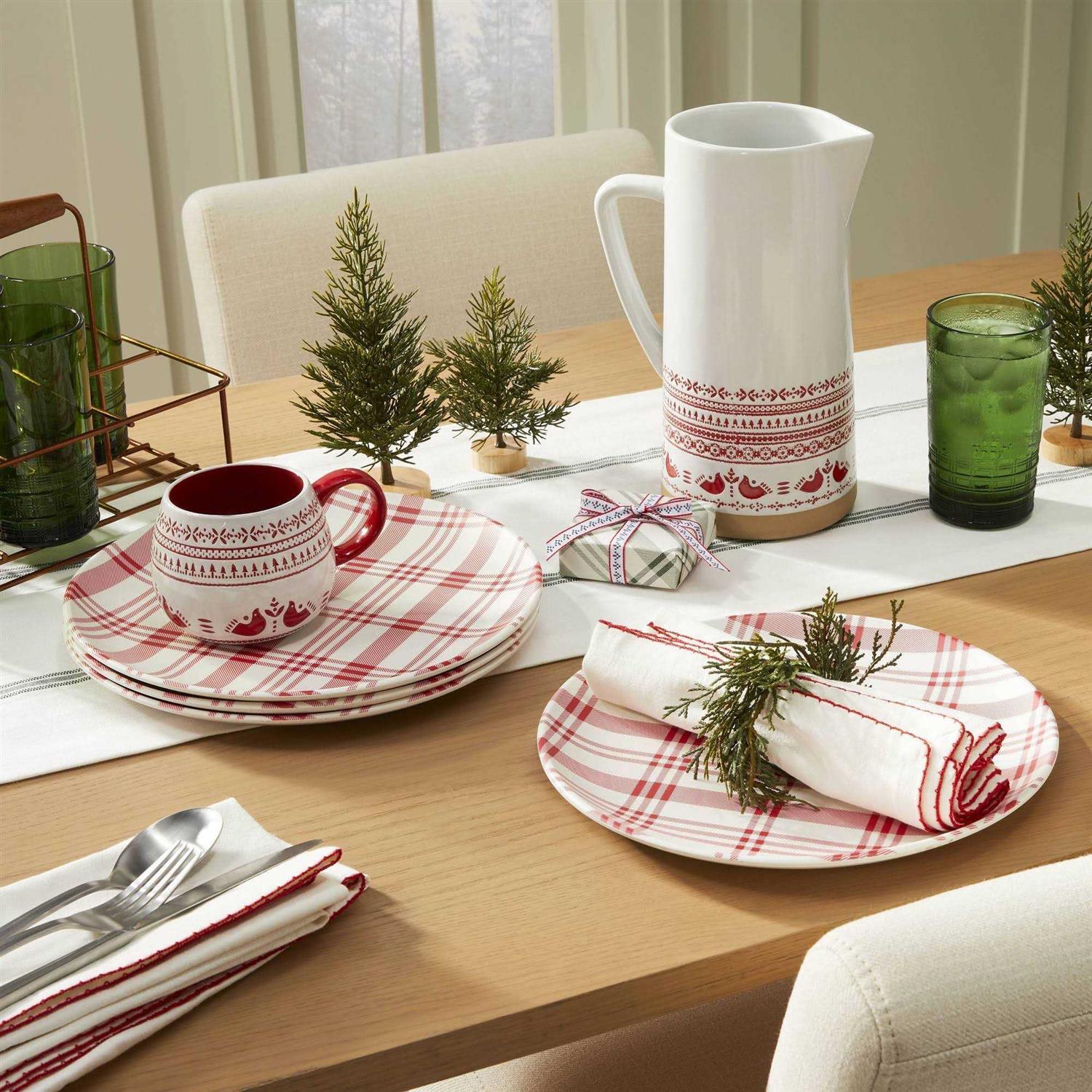 Made from a soft fabric blend, this set includes four napkins, each featuring red embroidered trim on a cream background to bring sweet seasonal charm to your kitchen decor. Best of all, you can toss them in the washing machine after use for easy cleaning. Hearth and Hand with Magnolia: Gather – Create – Enjoy Color: One Color.
