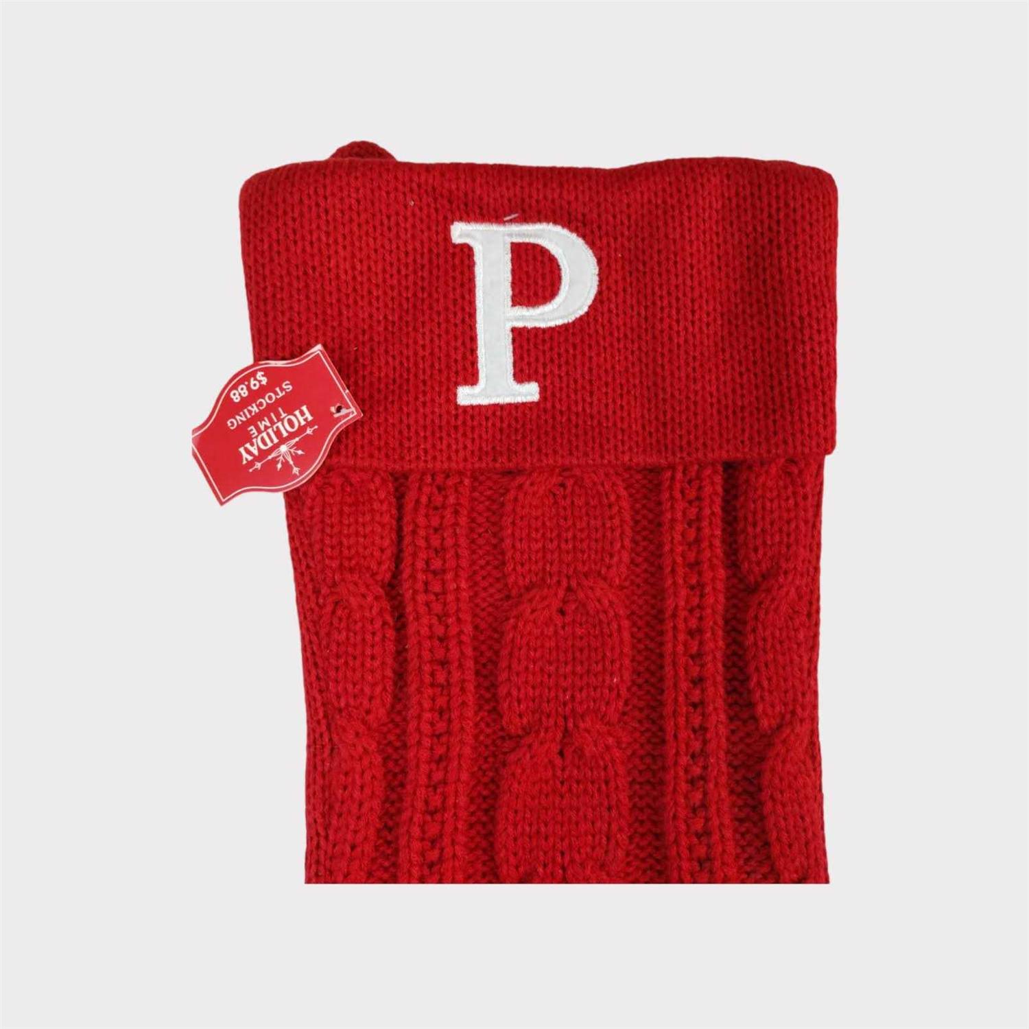 Holiday Time – Monogrammed P Red Knit 18″ Christmas Stocking (New)