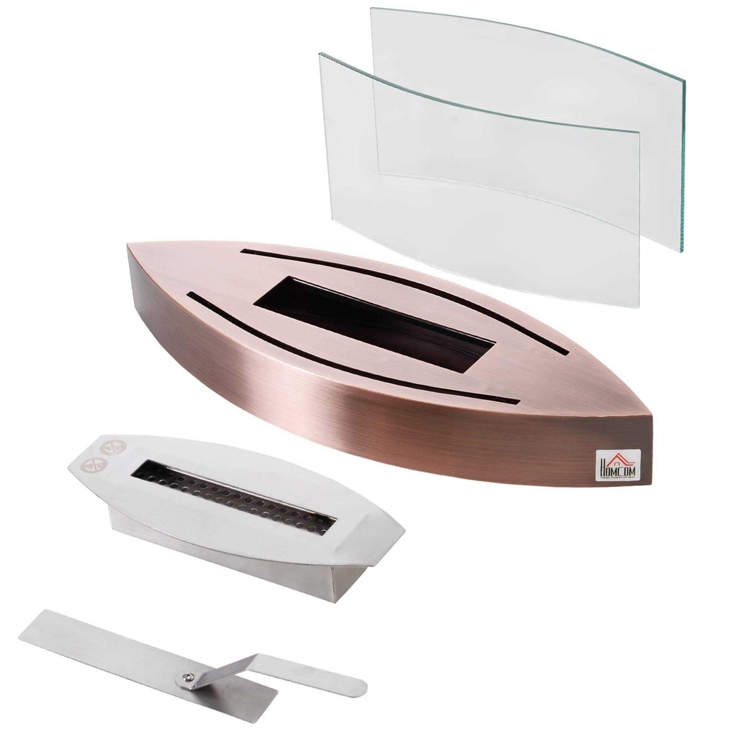 HOMCOM Tabletop Fire Pit Bowl Centerpiece Table Decoration with Glass Walls – N/A – Natural INOX