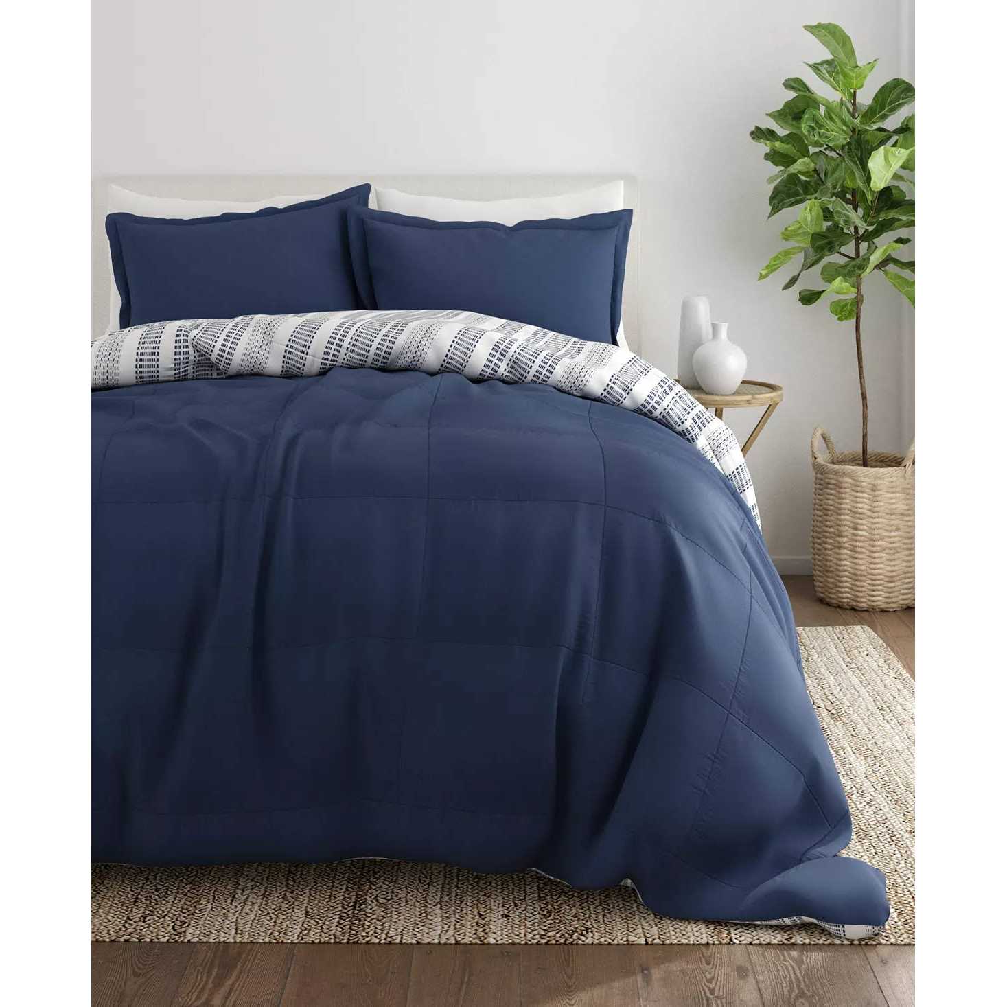 Home Collection Premium Down Alternative Farmhouse Dreams Reversible Comforter Set – Navy – Full/Queen