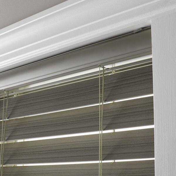 The 2-1/2 in. Cordless blinds add a cleaner look and are safer for children and pets. These blinds are designed with 25% larger slats for a greater outside view. Specially designed no-hole slats offer total light and privacy control. Slats are made from heat and moisture resistant material that is energy efficient and will not warp or crack. These blinds are ideally used for bathrooms, kitchens and garages. For maximum light and privacy control, rotate the slats downward to ensure proper closure. Color: Gray.