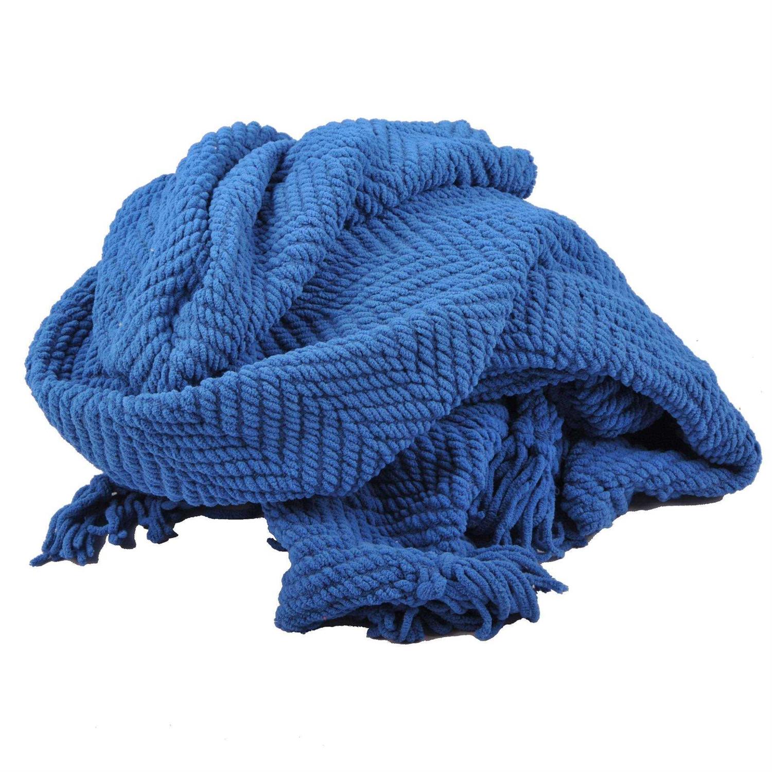A classic knitted design pairs with a chevron color pattern to round out the essential Throw Blanket. Use it in the master suite to complement a contemporary ensemble or add it in the den to level out a beachy coastal look.