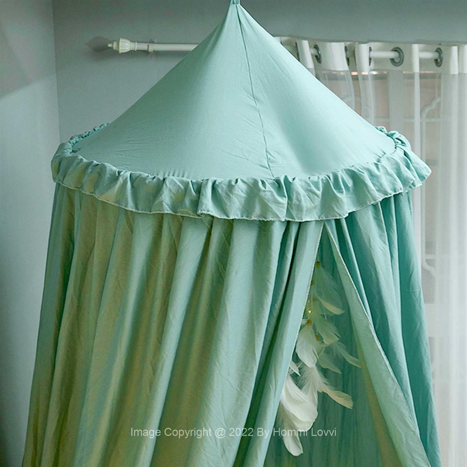 SKIN-FRIENDLY SOFT FABRIC This bed canopy for girls is product of 100% durable lightweight polyester fabric, soft, cozy, breathable. Designed for blocking out glaring light and giving you a shady and cozy sleeping place. The fabric of our princess bed canopy is supportable for machine washing, more beautiful effects on hanging will be achieved after washing. EXQUISITE DECORATION FOR KIDS This girls bed canopy with lights creates a romantic accent for bedrooms, reading nook, and outdoor areas. Always a special addition to any room decor, featured with an opening for easy front and lovely frills spherical dome. Ultimate play area for kids to hide, nap, meet their friends, form club and play inside. EXTRA LARGE SIZE FITS MOST LOCATIONS The height of this kids canopy is 9.2ft / 280cm with a hanging ribbon of 20”/50cm, 26″ / 65cm in top diameter, and bottom circumstance of 13ft /400cm. It’s larger than most other brands and fit most high ceilings. This kids canopy perfectly fits the kids bed, twin bed, full size bed, as well as play-mat and reading corner. QUICK & EASY TO INSTALL The bed canopy with lights installs easily into the ceiling comes with a removable built-in ring, wall plugs and instructions provided. The round dome adopts neat side-rolling, without any complex messing straps inner. You will get a dreamy castle/reading corner canopy tent in seconds. PREMIUM AFTER SERVICE If the twin bed canopy arrives with any ripped / stained / missed elements, please touch us to get a new one for replacement and service. Email will be quick reacted inside 24 hours. Hommi Lovvi Premium Full Size Bed Canopy for Girls & Boys This bed canopy is Perfect for hanging over bed, creating a special play or reading corner in your home. A wonderful gift for a birthday, and another occasion. Create a warm and pleasant atmosphere with our canopy. It will create a super cozy environment. Easy to assemble, Material, soft, comfortable, breathable, environmental-friendly. Color: Green (Due to the difference between different monitors, the picture may not reflect the actual color of the item.) Bed Canopy Dimensions: Total Height: Approx 110inches/9.2ft/280cm Bottom Circumstance: Approx 158inches/13ft/400cm Hanging Ribbon: Approx 20inches/50cm Diameter of Top Ring: Approx 25inches/65cm (Please allow some minor differences due to manual measurement.)