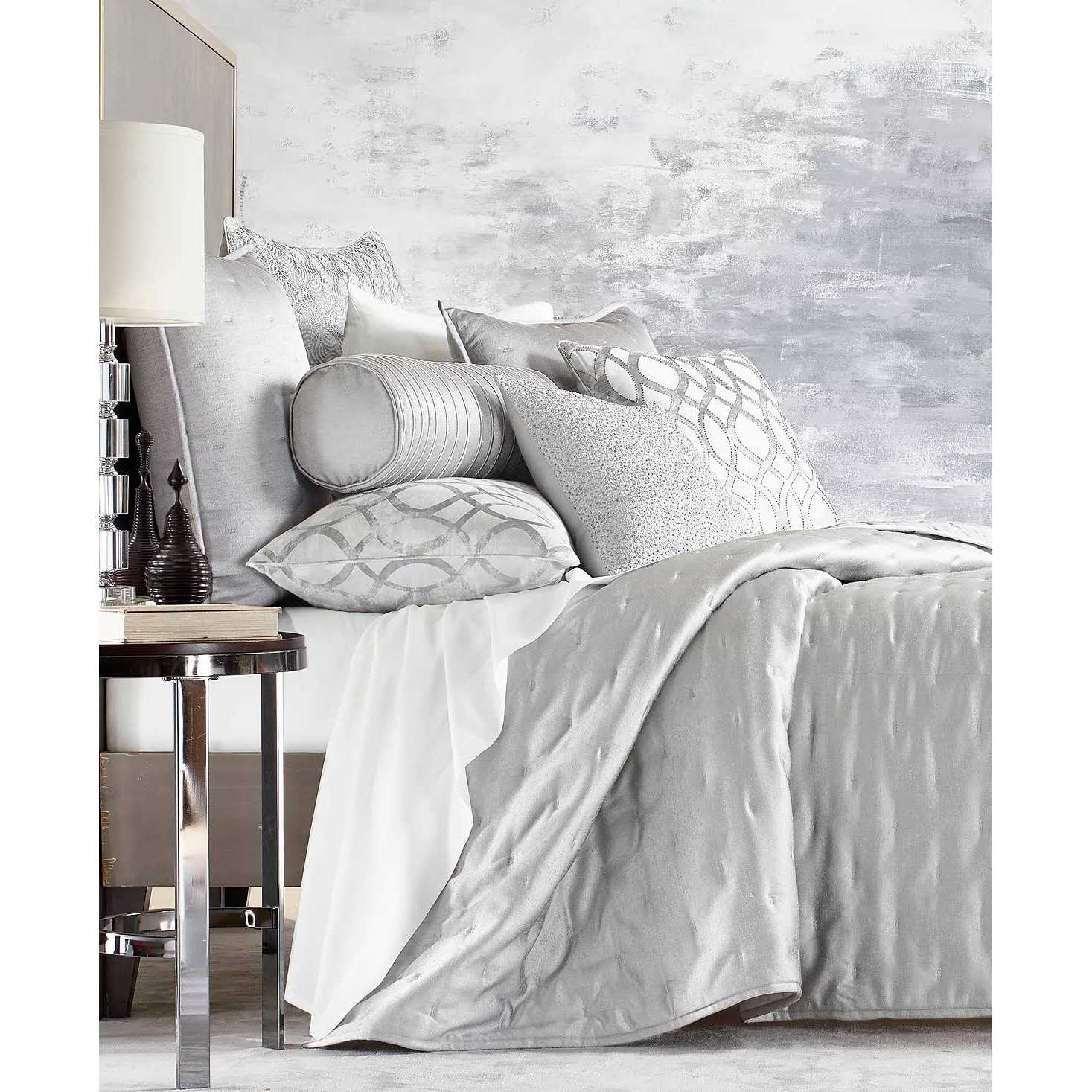 Give any bedroom a luxe contemporary look and feel with the shimmer and shine effect of Helix bedding collection. The technique is a unique heat transfer print on a geometric jacquard design, which is sure to elevate any bedroom.