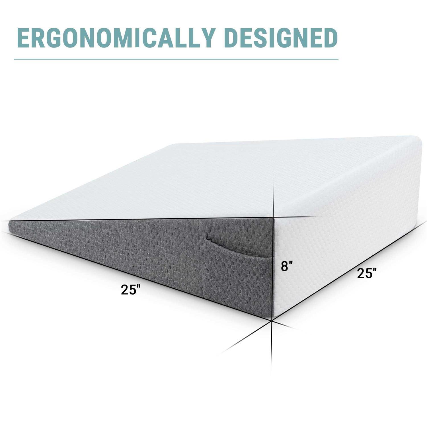 Wedge Pillow with Memory Foam Top for Sleeping,Reading and Rest, 8 inch Elevated Support Triangle Bed Pillow for Legs and Back Support with Washable