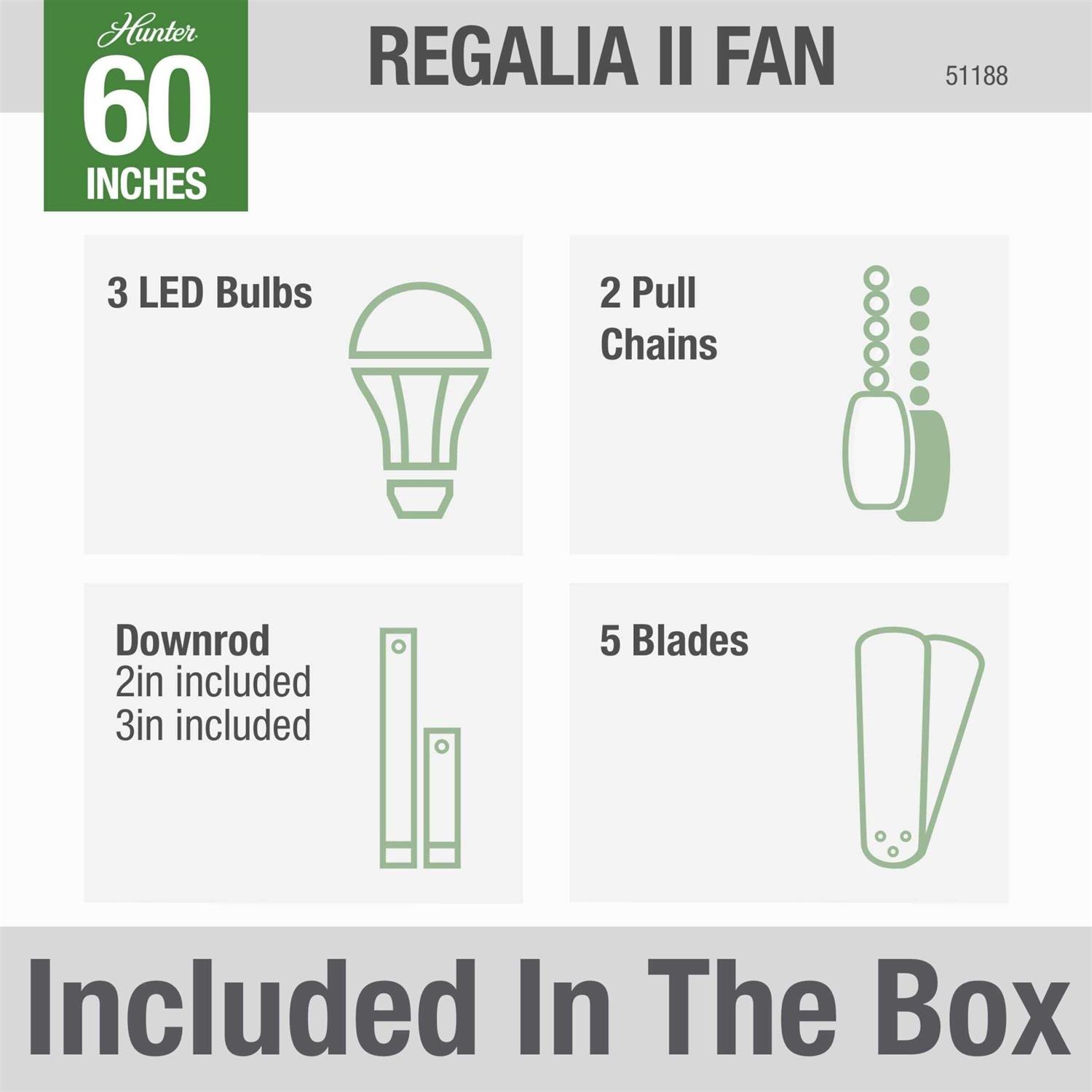 Hunter 60 inch Regalia II with LED Light – 5 Blade Indoor Ceiling Fan