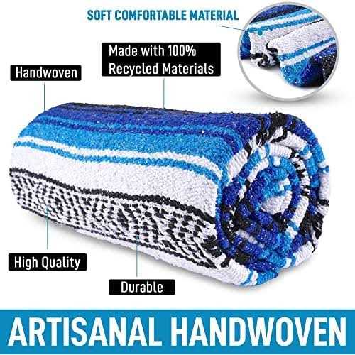 Material 60% Recycled Acrylic and 40% Recycled Polyester Product Dimensions 71″L x 47″W Item Weight 2 Pounds Product Care Instructions Machine wash cold then dry with no heat. Traditionally woven by artisans in Tlaxcala, Mexico, these vibrantly colored Indian blankets, bring to mind the charm of old Mexico as they have remained the same since the times of the Conquistador’s. Nothing will keep you warmer on a chilly night than a Baja or a Mexican blanket. And, mi amigo, you will look slick! Oh si, si! Our Aztec Blankets: are so authentic that no two blankets are the same and have slight variations in size and weight as part of their timeless feel and look. While being beautifully handcrafted and remaining true to their heritage our blankets have become very versatile and stylish which is why people now use them as hippie blankets, a poncho, yoga blankets, car blankets, horse blankets, park blankets, camp blankets, neutral home decor, camping essentials, tribal-western-southwestern blanket. They Get Softer With Every Wash: becoming soft throws that cover a twin bed while maintaining its durability. The more you use it, the cozier it gets. Made with 100% recycled materials, measuring about 71″ x 47″ and with approximately two pounds of 60% Recycled Acrylic and 40% Recycled Polyester, our authentic blankets are thick, machine washable on cold water and are to be tumble dried with no heat. Our Eco-friendly Products: are the perfect housewarming gift, also perfect for: Christmas, Holydays, anniversaries, Valentine’s Day, Mother’s Day, farmhouse fall decor, as a beach blanket sand proof and any other.