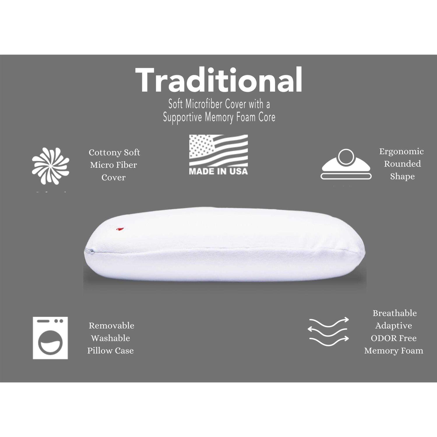 Rest easy and comfortably through the night with this king-size memory foam pillow. Medium-profile design supports you on your back, stomach, sides, or any other sleeping position. Crafted from breathable, supportive, and odor-free proprietary memory foam that contours to your body. Soft, microfiber cotton pillow cover is easily removable, machine washable, and stain-proof. King-sized medium-profile pillow measures 33 inches long, 17 inches wide, and 6 inches thick. Perfect for kids and adults alike; Sleeping pillow is ideal in your bedroom, kid’s room, or guest room.
