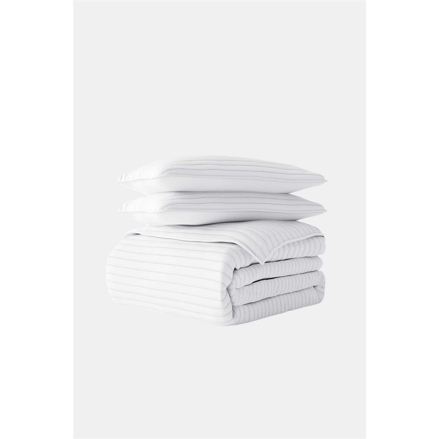 ienjoy Home All Season 3 Piece Stripe Stitch Quilt Set, Full/Queen – Natural