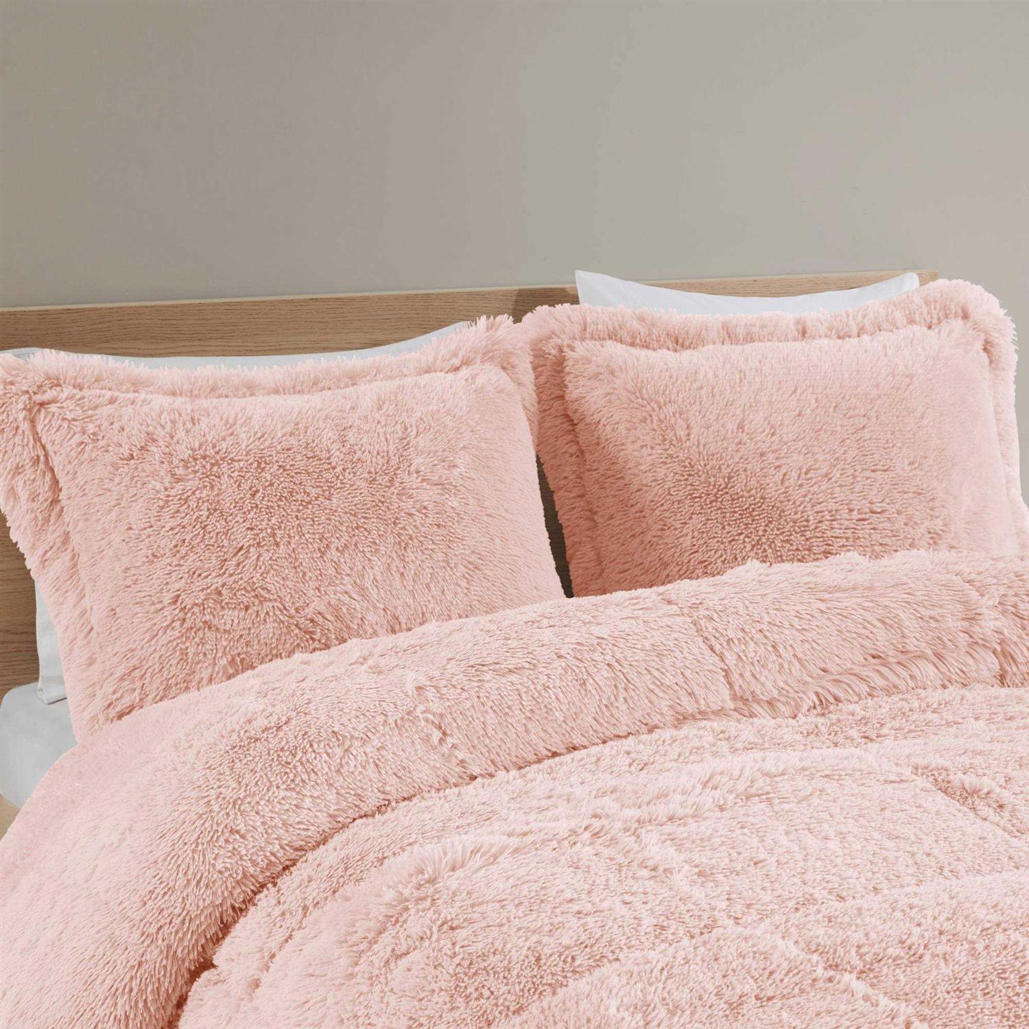 Intelligent Design – Malea Shaggy Faux Fur Comforter Set – Blush – Full/Queen