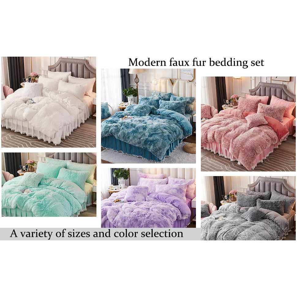 PRODUCT DIMENSION : Twin:1x duvet cover 66″x 90″, 1x pillowcase 20″x 26″. Queen: 1x duvet cover 90″x 90″, 2x pillowcases 20″x 26″. King:1x duvet cover 104″x 90″, 2x pillowcases 20″x 36″. PRODUCT FEATURES: 100-percent polyester microfiber faux fur shaggy reverse to crystal velvet fabric, silky soft on both sides. Traditional tie-dyeing art create a fashionable marble design apply to the public’s aesthetic point of view and modern bedrooms decor. Hidden zipper closure for duvet cover and pillowcases. Ties in the corners of the duvet cover to help keep the duvet in place. PRODUCT FUNCTION: Using the duvet cover without a duvet inside on warm summer and put down comforter inside in the colder months. A great gift for everybody, every festival and special occasion, perfectly decorate your room in a comfortable and wild way. EASY CARE: Turning it inside-out, machine wash with cold water cycle, gentle and low temperature drying. Avoid hang dry which will cause deformation. Do not bleach, do not Iron. Please refer to the care label. Due to the special nature of the product, it is recommended to use after shaking and it will be more fluffy. Hand wash or machine wash cold separately. br Gently cycle only. Dot not bleach. Tumble dry low. Do not iron.