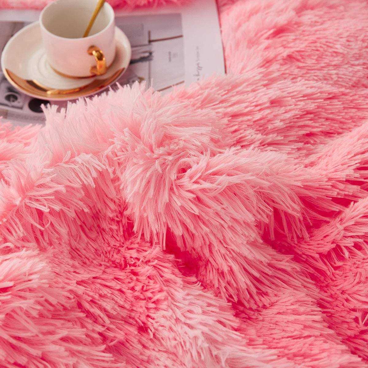 JAUXIO Luxury Abstract Faux Fur Bedding Set Tie Dye Printed Shaggy Duvet Cover with Pillow Shams Soft Crystal Velvet Reverse (Pink, Queen)