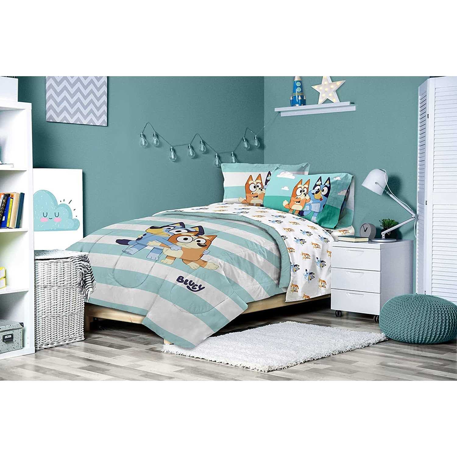 About The Item: Perfect Fit & Fun Design – This Full Bed Set Includes (1) 76 X 86 Inch Full Comforter, (1) 54 X 75 Inch Fitted Sheet, (1) 81 X 96 Inch Flat Sheet, (2) 20 X 30 Inch Standard Pillowcases, And (2) 20 X 26 Inch Shams. Add A Touch Of Decorative Enchantment To Your Room With Our Fashionable And Super Soft Bluey Bed Set. High Quality & Great Value – Keep Your Little One As Cozy As Can Be! Bluey Full Bed Set Is Super Soft And Great For All Seasons. 100% Brushed Microfiber Polyester Allo.