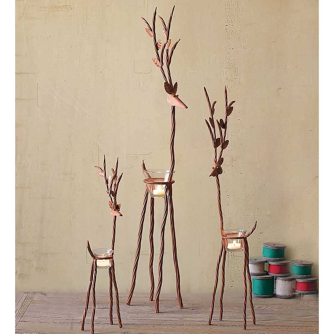 Rustic Iron Reindeer with Tealight Cups (Set of 3)
