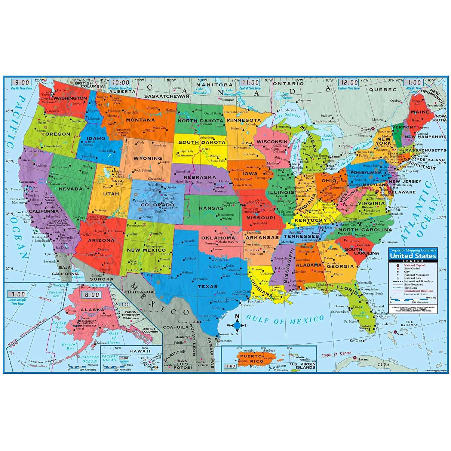 Includes (1) – 40″ x 24 United States Map Map features Capitol and major cities. Shows National monuments and parks Has all 50 United States and Puerto Rico Shows time zones and continental divide From the trusted folds at Superior Mapping Company this large poster size United States Map is perfect for the home or office.