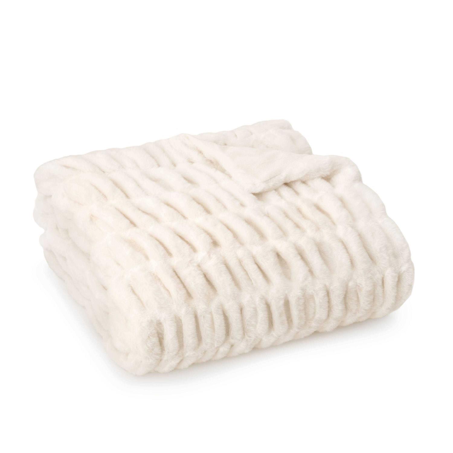 Lounge and daydream of Karl Lagerfeld Paris ruched faux fur throw. Fashionable and cozy faux fur lends the softest touch that instantly relaxes your senses. A sleek black ribbon presents this throw as the perfect gift.