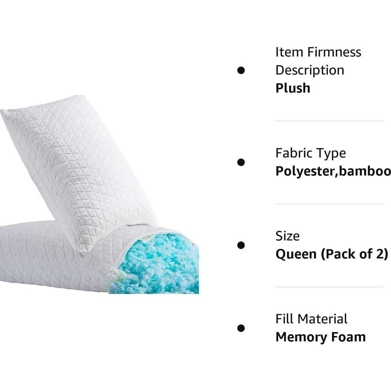 About The Item: Breathable And Cooling Pillows:our Bamboo Memory Foam Pillows Use A Cooling Shredded Foam Technology To Keep You Cool All Night. The Breathable Cover Keeps Your Pillow Dry And Provides Maximum Comfort. Luxurious Bamboo Pillow Cases: Our Bamboo Pillow Cases Are A Great Alternative To Down Or Latex Pillows. The Pillow Covers Are Also Washable. The Skin-friendly Soft Cover Is Made Of 60% Polyester And 40% Bamboo Fiber Rayon.this Eco-friendly Material Can Increase Breathability And .