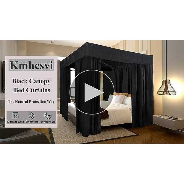 Kmhesvi Black Canopy Bed Curtains – 4 Corner Post Bed Curtains Canopy Queen Bed Canopy Curtains for Adults Girls Bedroom Decoration(Black, Queen)
