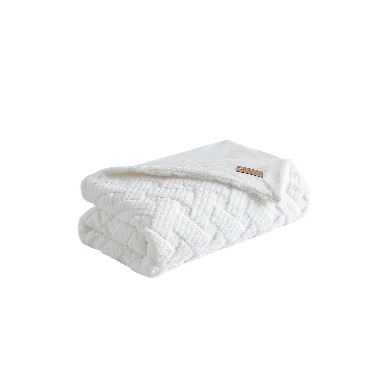 Cozy up in luxurious softness with the stylish Koolaburra by UGG Crystelle Faux Fur Throw. Cozy up in luxurious softness with the stylish Koolaburra by UGG Crystelle Faux Fur Throw. FEATURES 50″ x 70″ Soft textured faux fur with an oversized geo design Soft micromink reverse Fashionable colors Enhances any room decorCONSTRUCTION & CARE Face: polyester woven, solid embossed & pinsonic faux rabbit fur Back: polyester woven, solid micromink Spot clean ImportedSUSTAINABILITY FEATURES Tested for harmful substances Phthalate free Certification No. 19. Color: White.