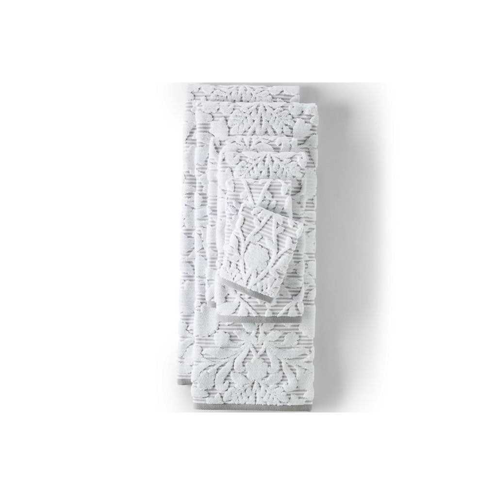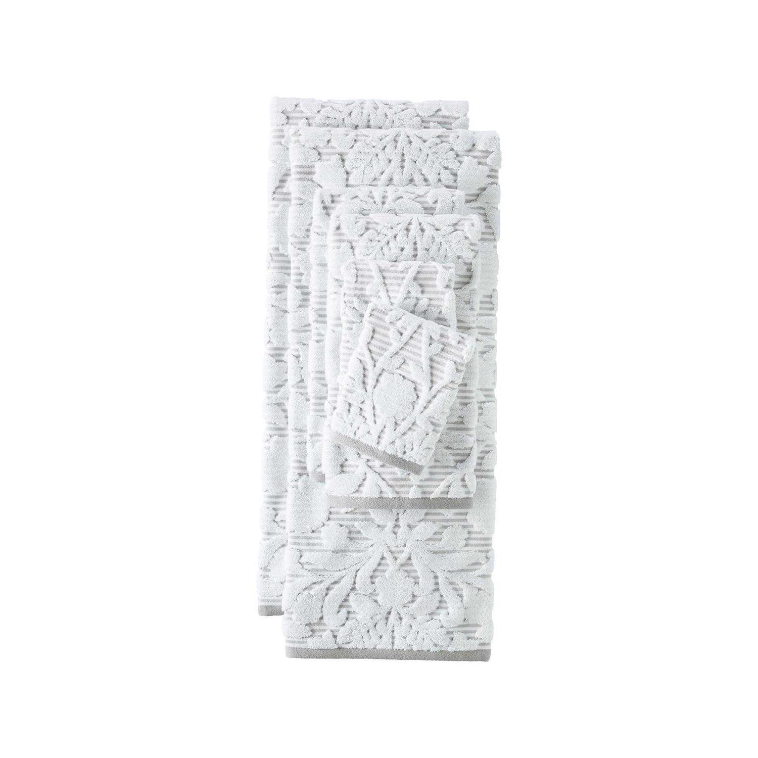 Beautiful sculpted florals on this towel set make it impossible to choose just one. Dobby borders add a clean edge with textural interest.