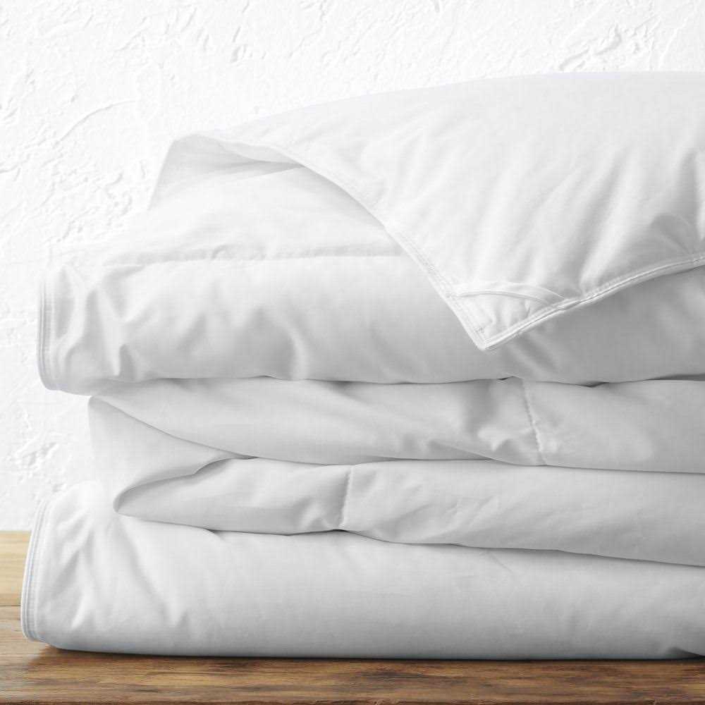 This is one high-quality down comforter, with extras that make it an exceptional value. For starters, the 550 fill power down is a high-quality insulator that’s super-cleaned for greater purity. It’s prewashed, then washed again in an intense cleansing process for a uniform grade of down that is dust- and odor-free. It’s so pure it can be labeled “hypoallergenic.” What’s more, this comforter’s box construction keeps down dispersed so it doesn’t shift and cause cold spots. And fabric loops secure the comforter inside a duvet cover.