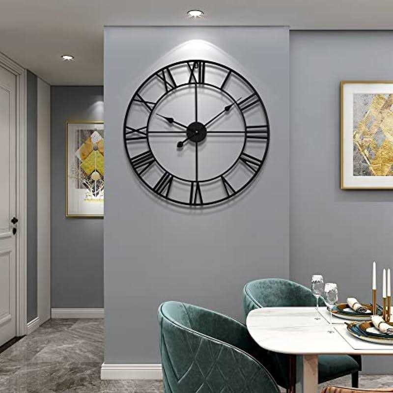 LEIKE Large Modern Metal Wall Clocks 60cm / 24 inch Rustic Round Nearly Silent Little Ticking Battery Operated Black Roman Numerals Clock for Living
