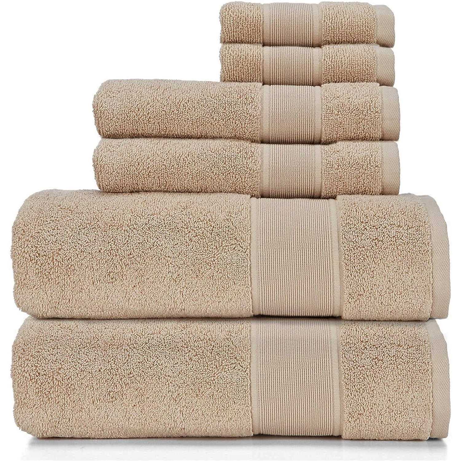 - 6 Piece Towel Set includes 2 bath towels, 2 hand towels & 2 washcloths.