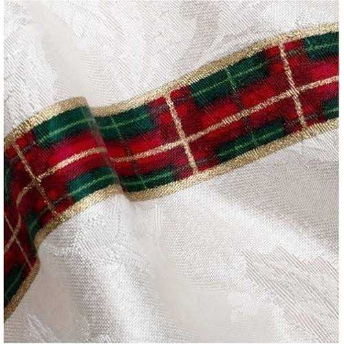 The Lenox Holiday Nouveau table linen collection offers traditional holiday motifs of green holly, swirling plaid ribbons and golden bows. A magnificent red and green tartan plaid border adorns the collections engineered print tablecloth. Over printed on an ivory holly leaf pattern woven damask fabric. A festive addition to your holiday decor you’ll use year after year.