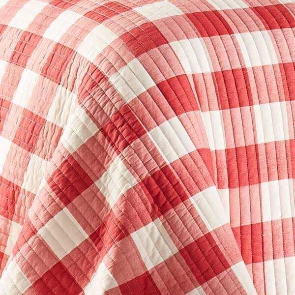 The Road Trip Reversible Quilt Set by Levtex Home is inspired by a cozy farmhouse Christmas. Featuring a large scale red and white gingham check on the front, this design will immediately transform your bedroom. Made with the softest lightweight fabrics, this reversible quilt features a red and white buffalo plaid in cotton on the one side, reversing to a soft, brushed microfiber print with cars piled high with all things Christmas on the other. The Quilt Set is machine washable and includes the quilt and standard pillow shams. Happy Holidays!