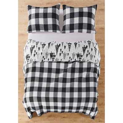 The Northern Star Reversible Twin/Twin XL Quilt Set by Levtex Home is inspired by a contemporary Christmas landscape. Offered in shades of black and white, this design will immediately transform your bedroom. Made with the softest lightweight brushed microfiber, this reversible quilt features a decorative Christmas tree design, reversing to a chic buffalo plaid in black and white on the other. The Twin/Twin XL Quilt Set is machine washable and includes the quilt 68 in. x 86 in. and 1-standard pillow sham 26 in. x 20 in. Bring the holidays home. Color: Black;White.