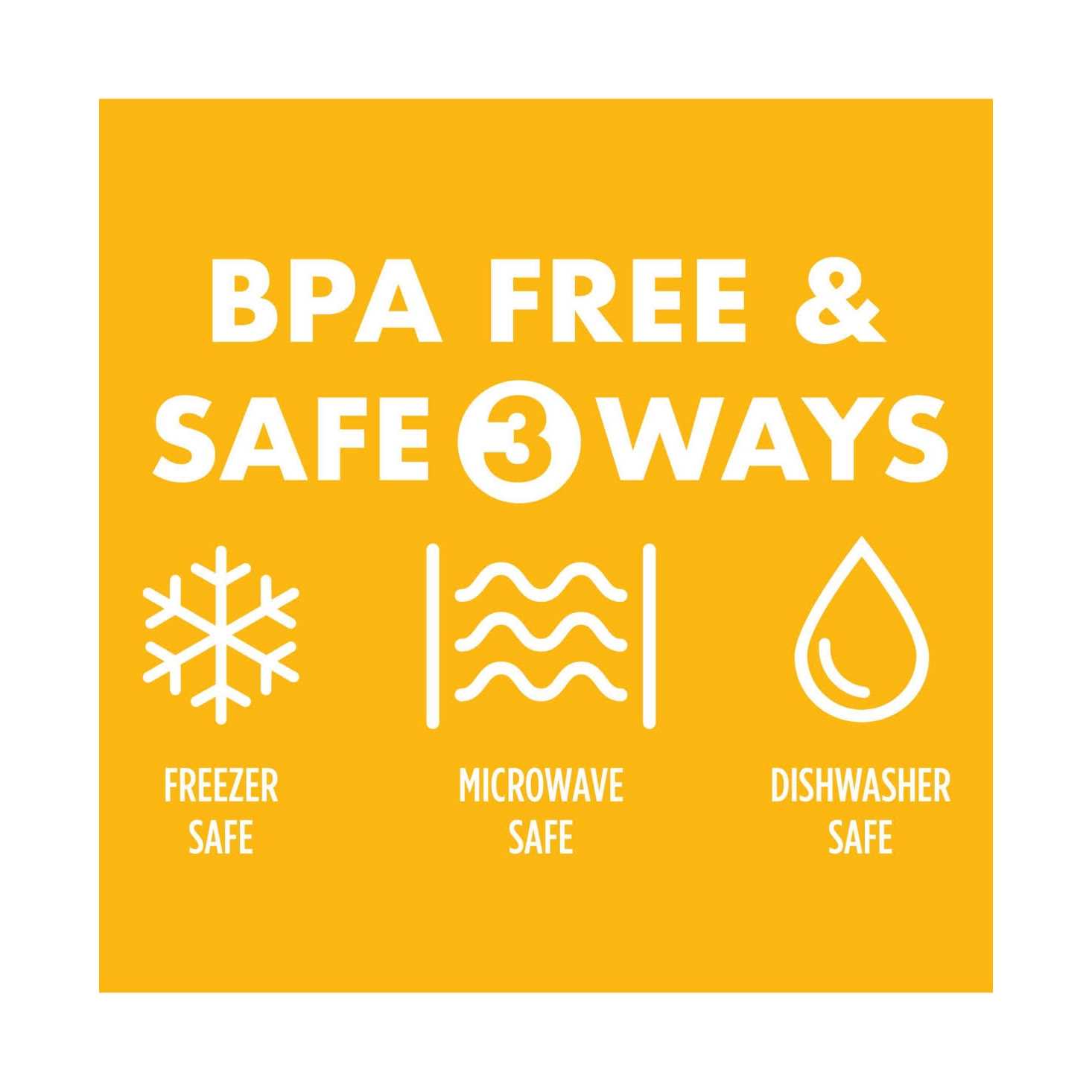 Polypropylene with silicone seal, temperature resistant from – 20° to + 120° Celsius. With patented safety lock. The patented four-wing safety lock with silicone seal closes 100% airtight and watertight. This keeps food fresh for longer and prevents odours from escaping. The container itself does not absorb any odors or discolorations.