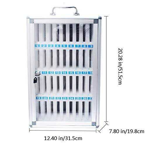 Material:Aluminum alloy,MDF and transparent plexiglas,sturdy and durable,waterproof,anti-pressure. There are altogether two keys to the safe. Take care of your keys, don’t get them to lost. The built-in pearl cotton material is used to prevent abrasion,and the number is arranged to facilitate the search,the storage box has a wall buckle at the back,which can be easily hung on the wall and can not fall down. Humanized portable design,easy to carry,ecurity lock can protect your phone more secure. Stylish and attractive appearance is ideal for use in conference offices,factories,schools and restaurants. Size:31.5×19.8×51.5 cm/ 12.4×7.8×20.3 inches. This mobile storage box is safer,more convenient,fashionable and attractive to help you organize things and improve work efficiency. Product Features: -Material:Aluminum alloy,MDF and transparent plexiglas. – Size:31.5×19.8×51.5 cm/ 12.4×7.8×20.3 inches. -Large capacity of 12 holes. Product advantage: -Made of high quality materials,strong and durable,waterproof,and resistant to pressure. -Pearl interlayer cotton material is built in.It is not easy to scratch and wear when storing mobile phones. -Digital number design,without confusion,easy to find and manage. -Can carry,also can hang on the wall,put convenient. Package Included: 1 x Storage Cabinet for Cell Phones(36 Slots)