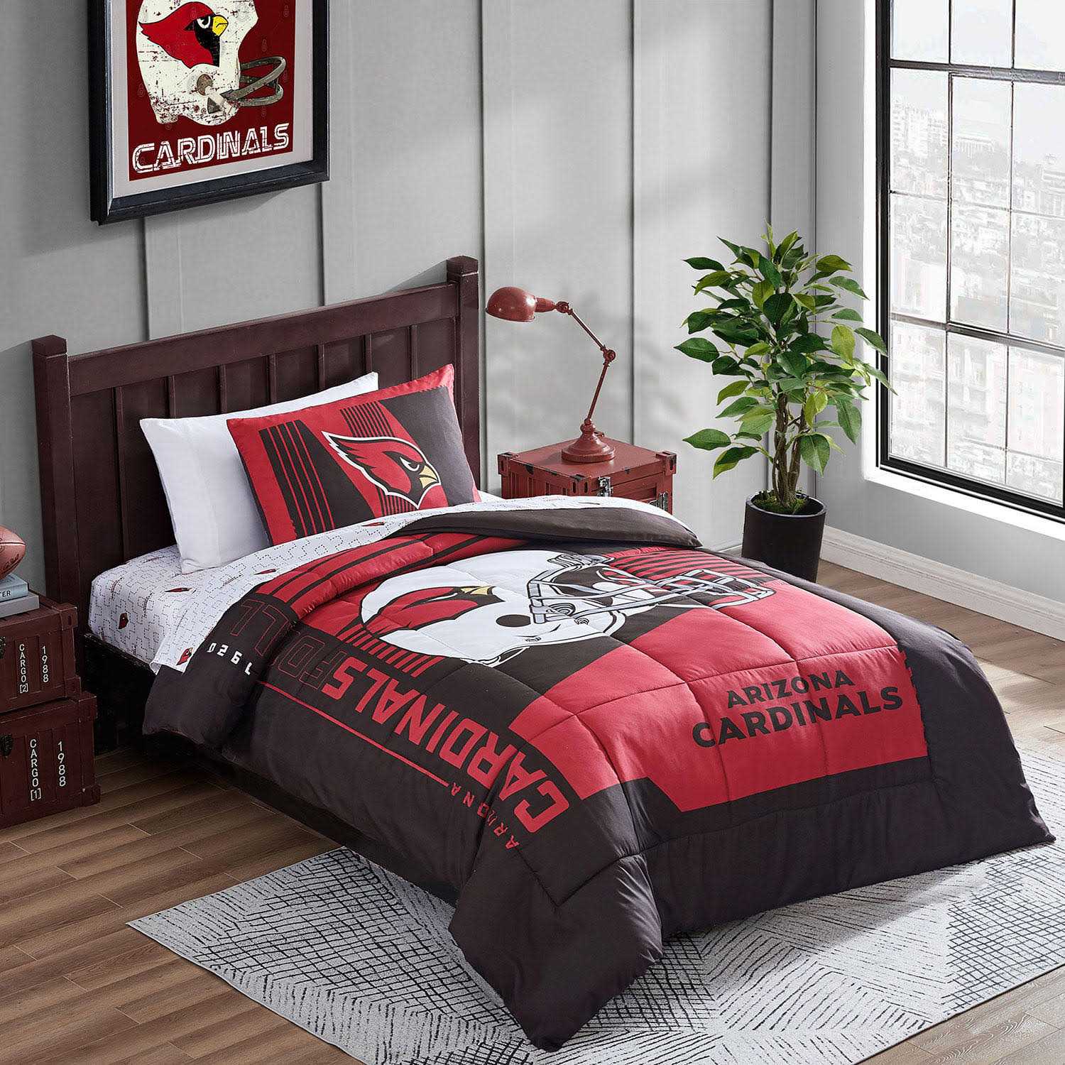 Create the room of your dreams by styling your entire bed in one go with our ‘Status’ Bed-In-A-Bag Set. This complete and officially licensed NFL set will have you wishing a super bowl victory was as easy as styling your bed. Enjoy the buttery soft microfiber sheets, cozy comforter and matching pillow shams designed with the latest graphics. Available in a variety of bed sizes to suit every fan.